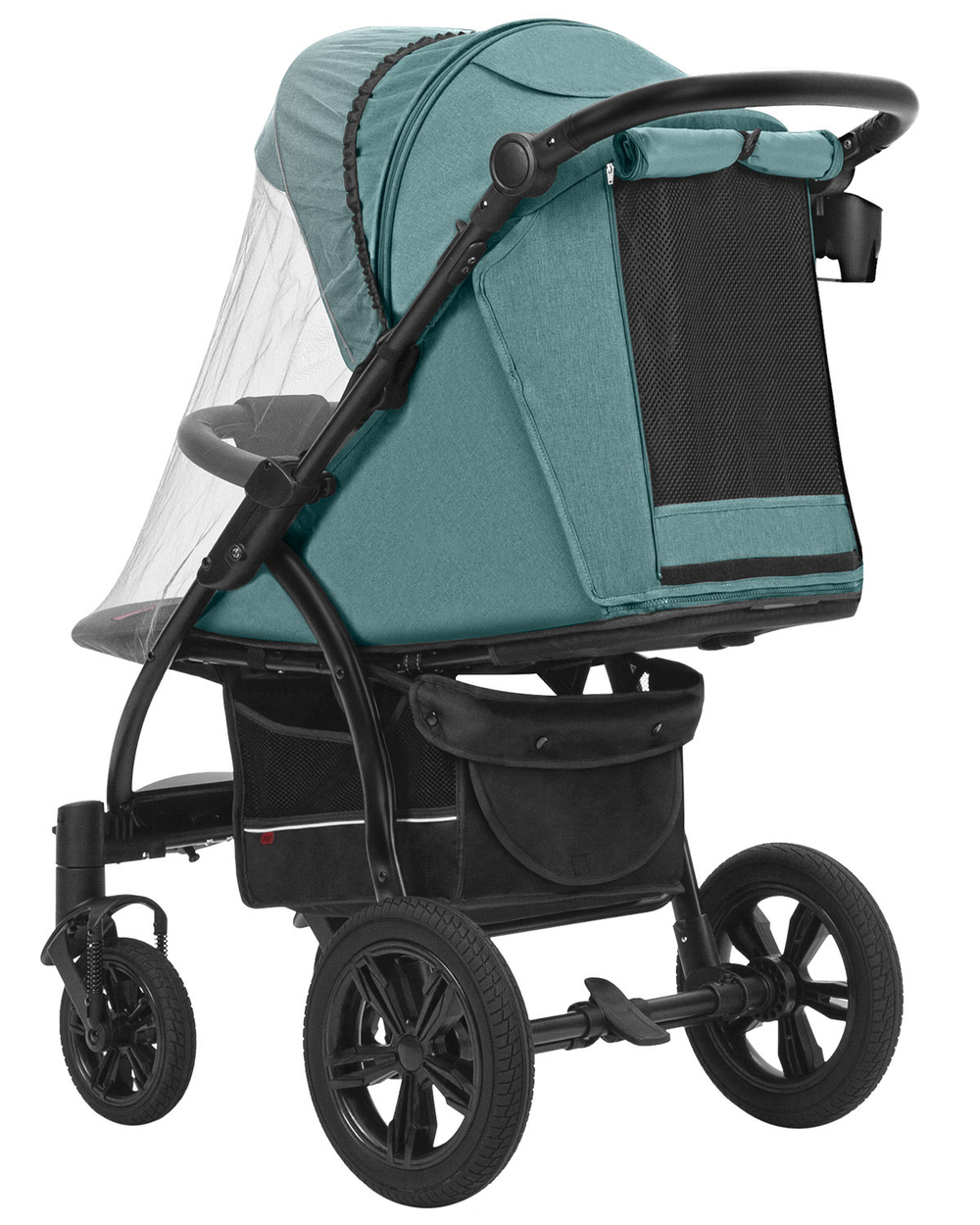 Великий капюшон, чохол на ніжки і дощовик захистять дитину від негоди. У моделі оновлений механізм спинки - тепер відрегулювати кут нахилу стало ще простіше-достатньо всього лише потягнути ремінь однією рукою.