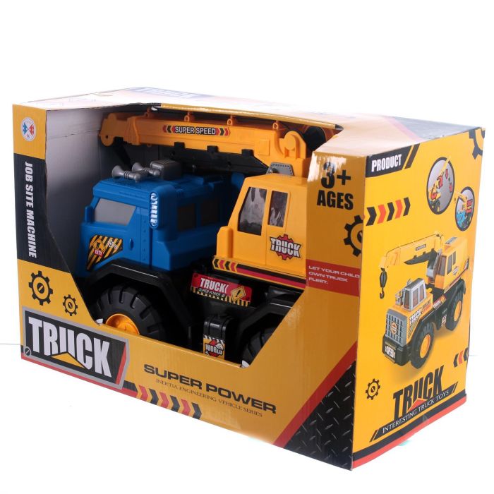 Впечатляющий игрушечный подъемный Автокран внешне очень похож на настоящую большую спецтехнику.